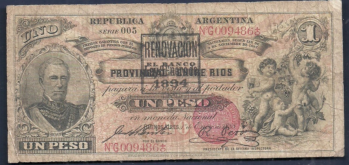 ARGENTINA BANCO GARANTIDO 1 PESO ENTRE RIOS COL 71 D