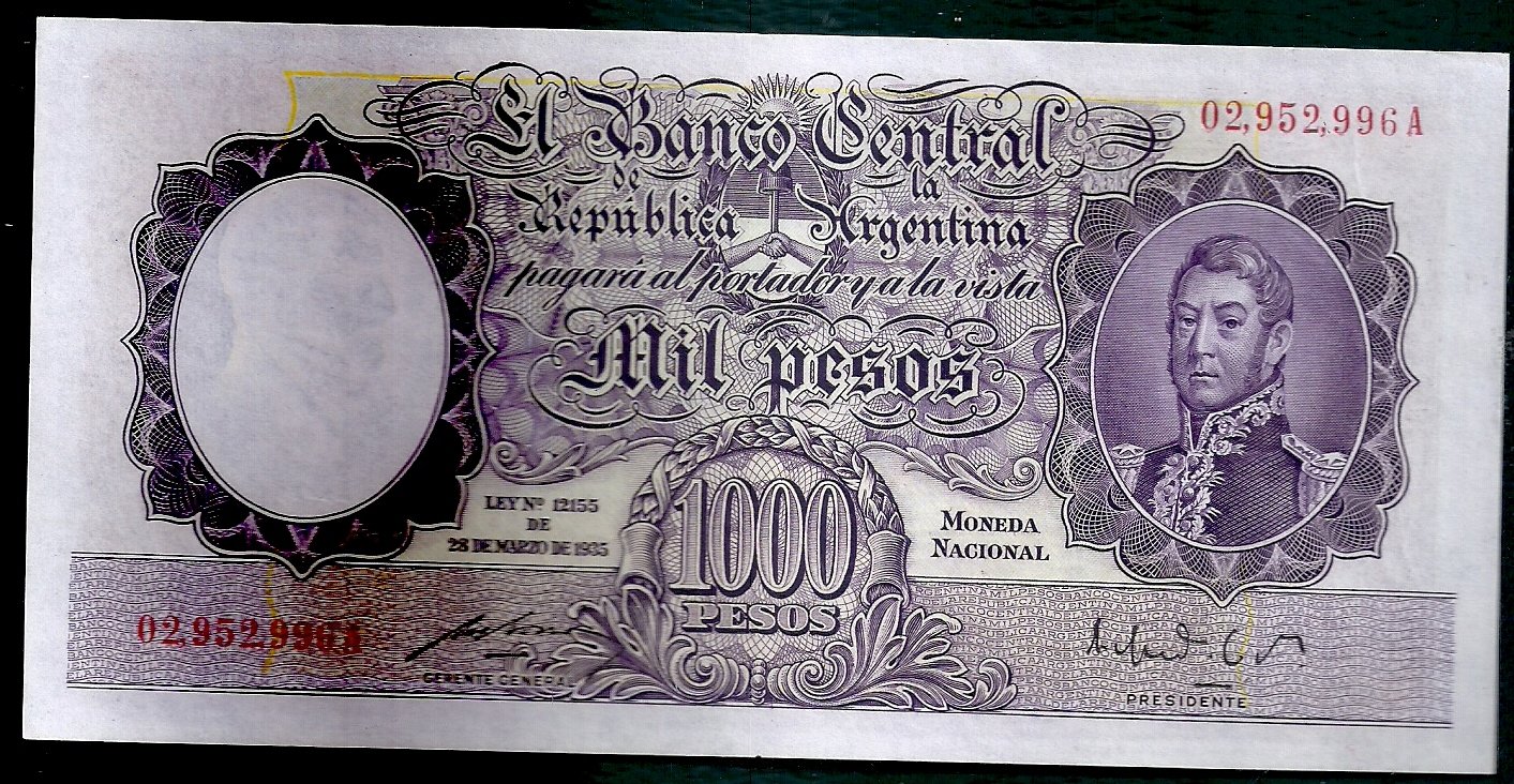 ARGENTINA BILLETE MONEDA NACIONAL 1000 PESOS BOT 2131 AU