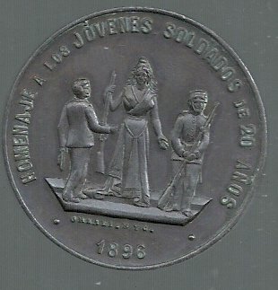 MEDALLA HOMENAJE A LOS JOVENES SOLDADOS DE 20 AÑOS 1896