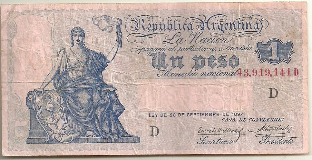 ARGENTINA 1 PESO CAJA DE CONVERSION BOT 1557 VF-