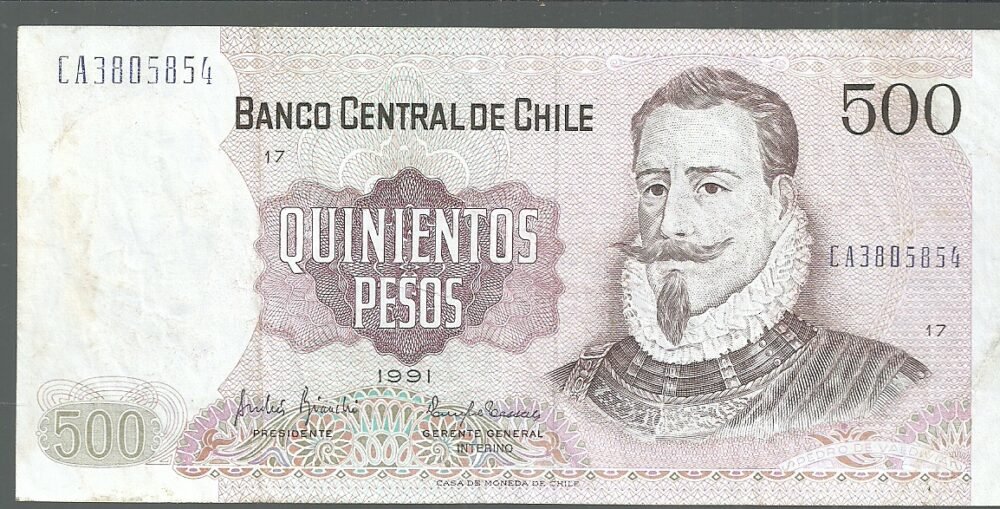 CHILE 500 PESOS 1991 P 153.c SERIE CA BLOK 17 VF