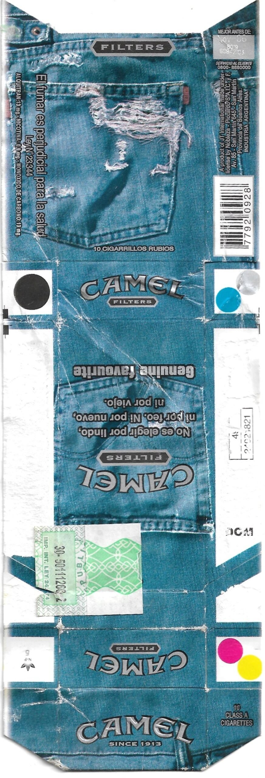 MARQUILLA CAMEL 10 CIGARRILLOS INDUSTRIA ARGENTINA BOX