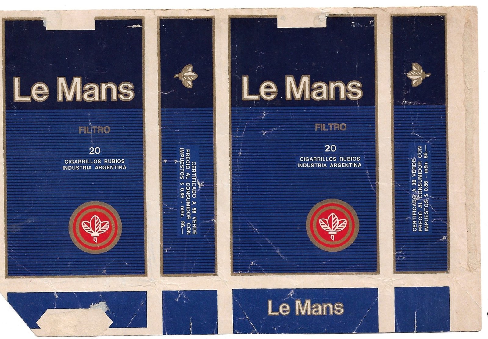 MARQUILLA DE CIGARRILLOS LE MANS 20 INDUSTRIA ARGENTINA SOFT PRECIO IMPRESO $0,86