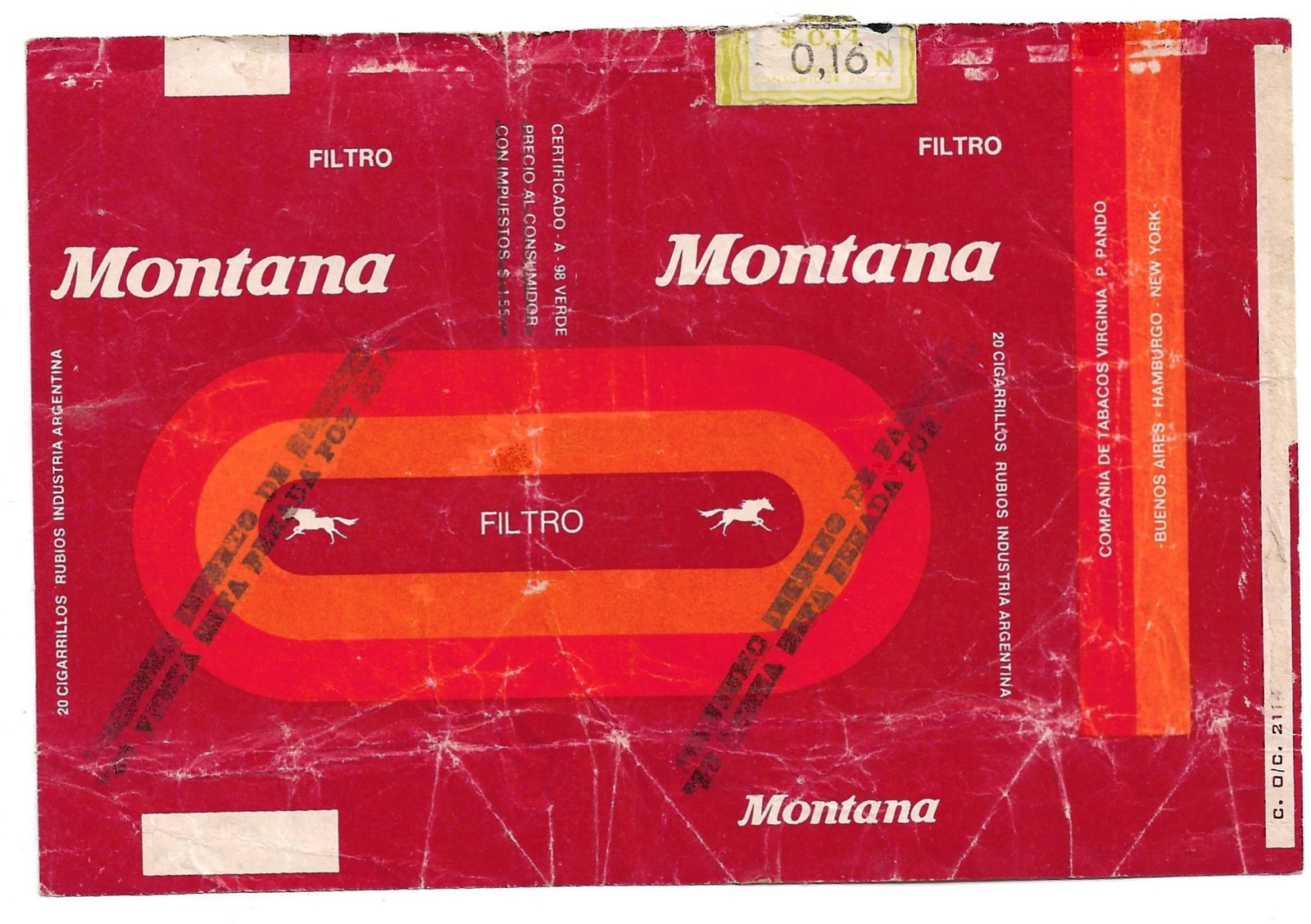 MARQUILLA DE CIGARRILLOS MONTANA 20 INDUSTRIA ARGENTINA SOFT PRECIO IMPRESO $