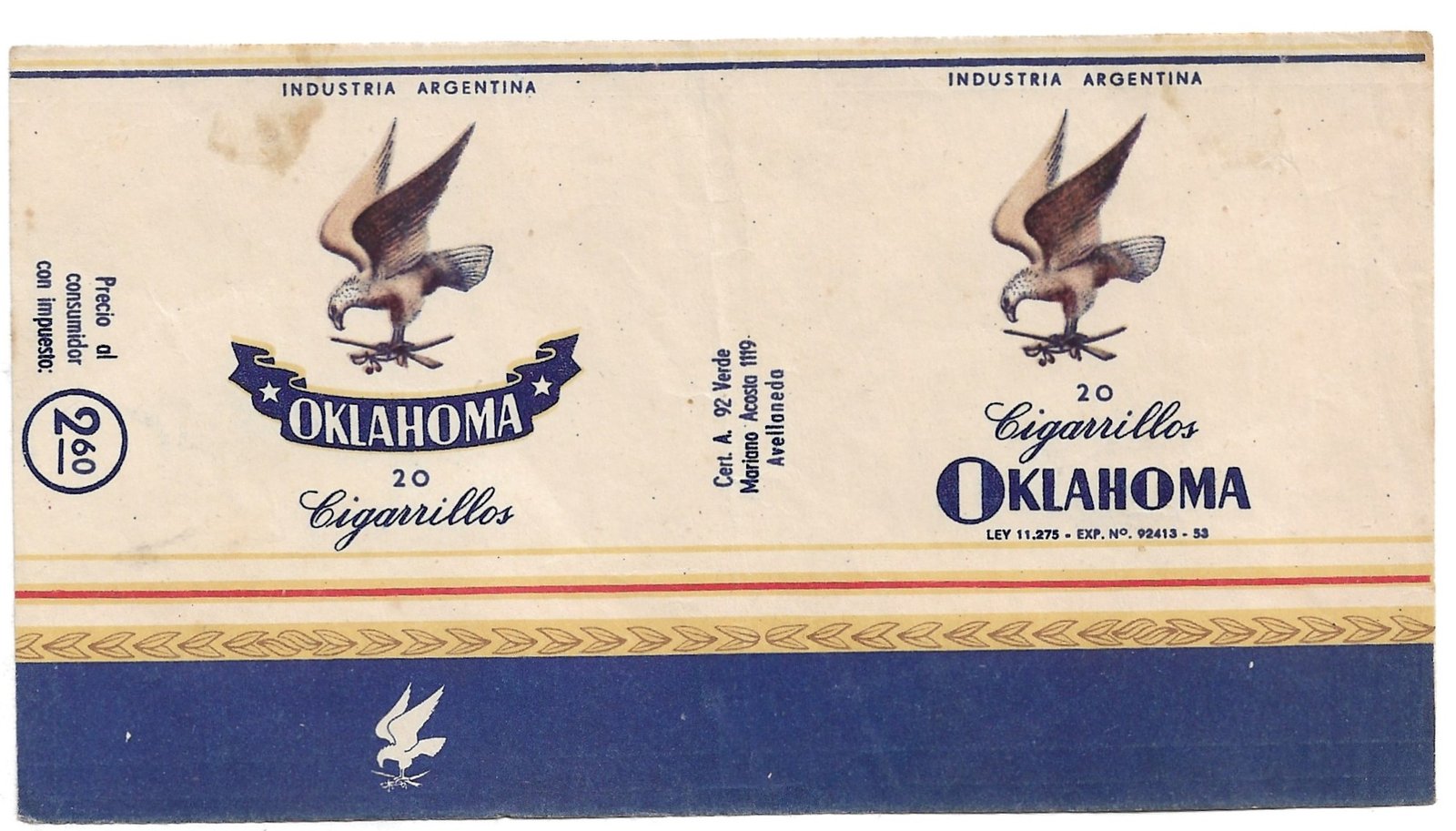 MARQUILLA OKLAHOMA 20 CIGARRILLOS INDUSTRIA ARGENTINA SOFT