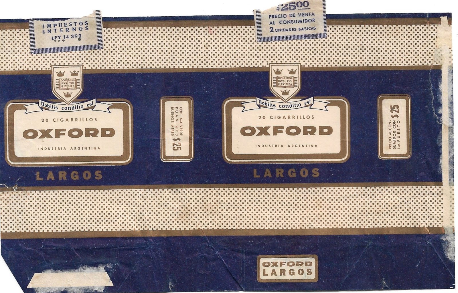 MARQUILLA OXFORD 20 CIGARRILLOS INDUSTRIA ARGENTINA SOFT PRECIO IMPRESO $