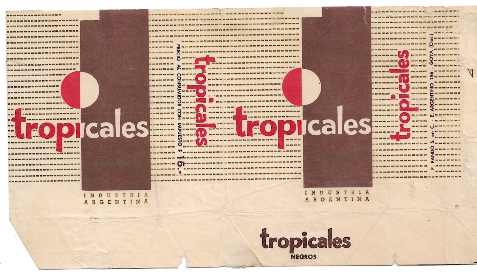 MARQUILLA TROPICALES 20 CIGARRILLOS INDUSTRIA ARGENTINA SOFT PRECIO IMPRESO $15