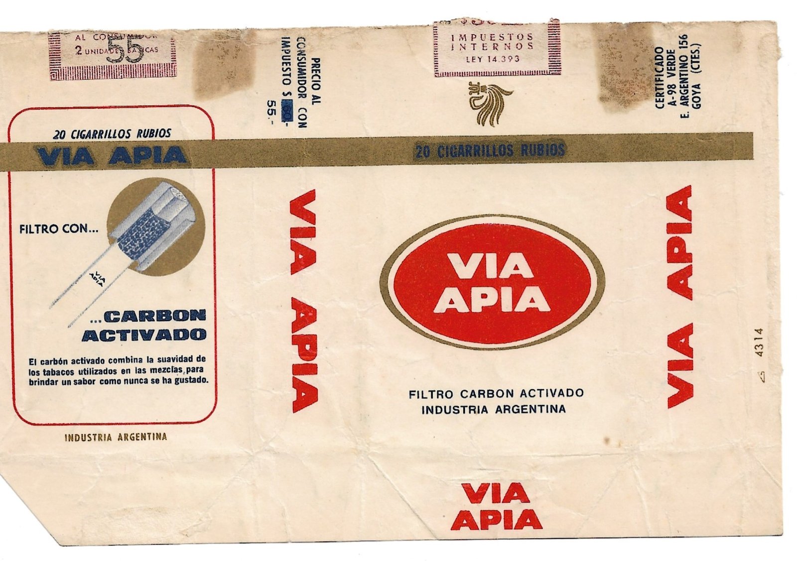 MARQUILLA VIA APIA 20 CIGARRILLOS INDUSTRIA ARGENTINA SOFT PRECIO IMPRESO $55