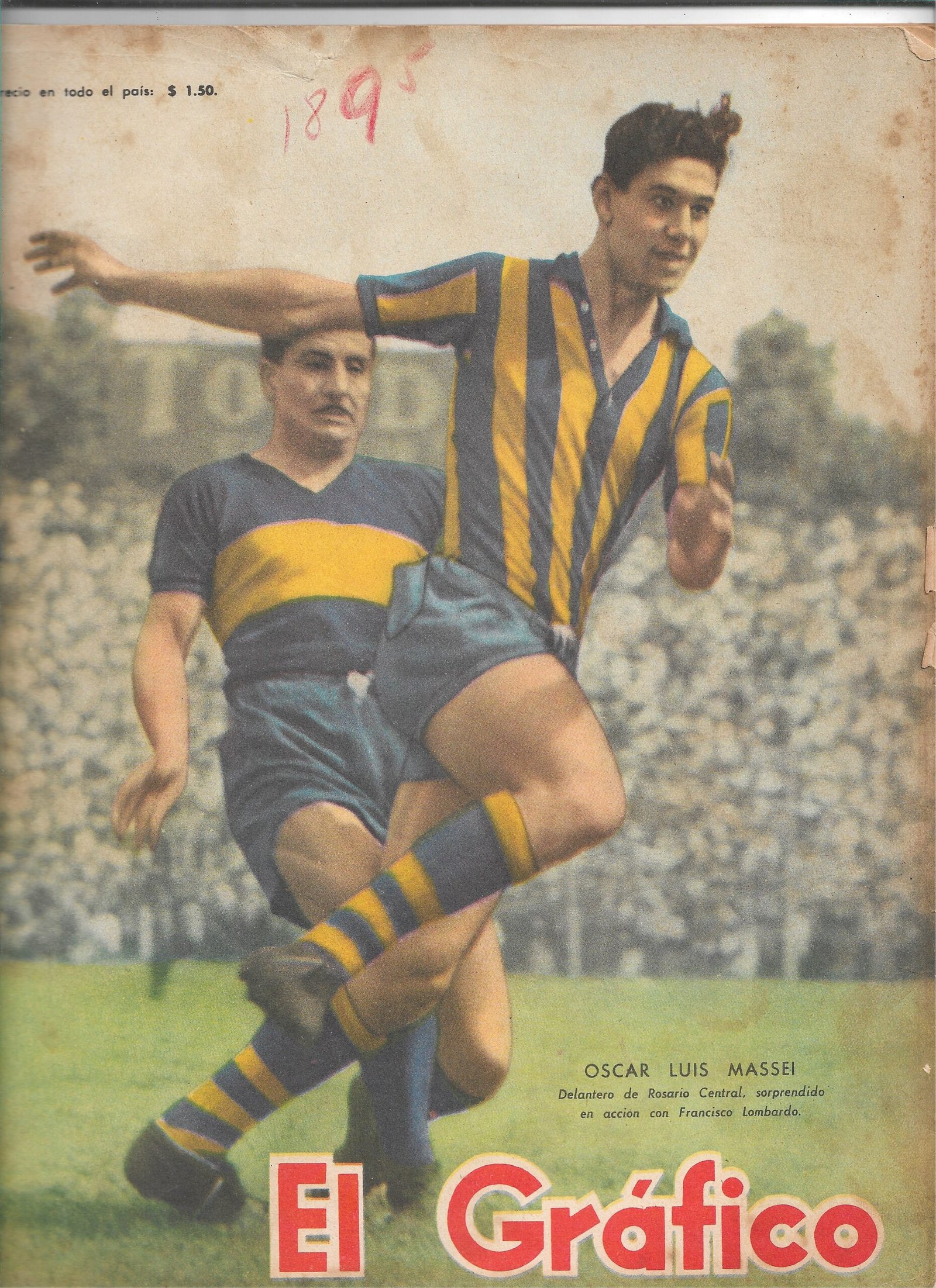 REVISTA EL GRAFICO PORTADA OSCAR LUIS MASSEI DELANTERO DE ROSARIO CENTRAL N°1895 16/12/1955