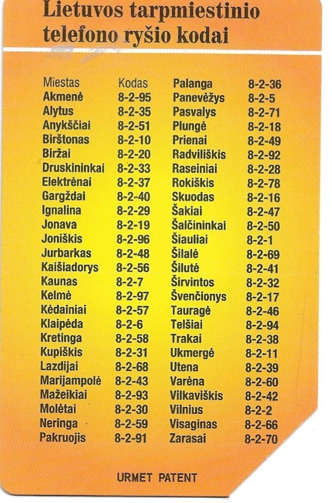 TARJETA TELEFONICA LITUANIA 25 UNIDADES TARPMIESTINIO TELEFONO